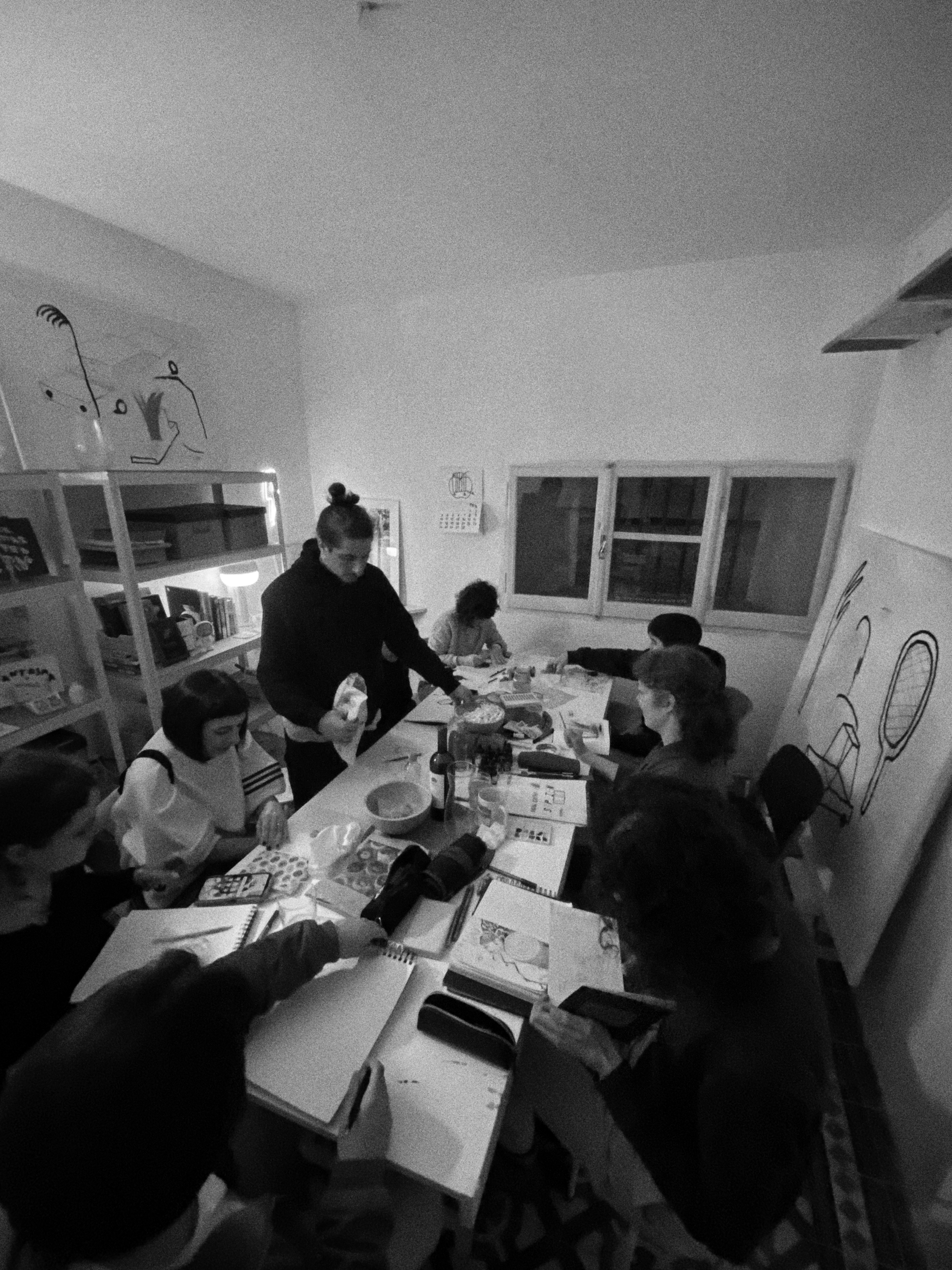 Indipendentemente dal tuo livello di esperienza, attorno a un tavolo, ci riuniamo per disegnare, scambiare idee e chiacchierare.