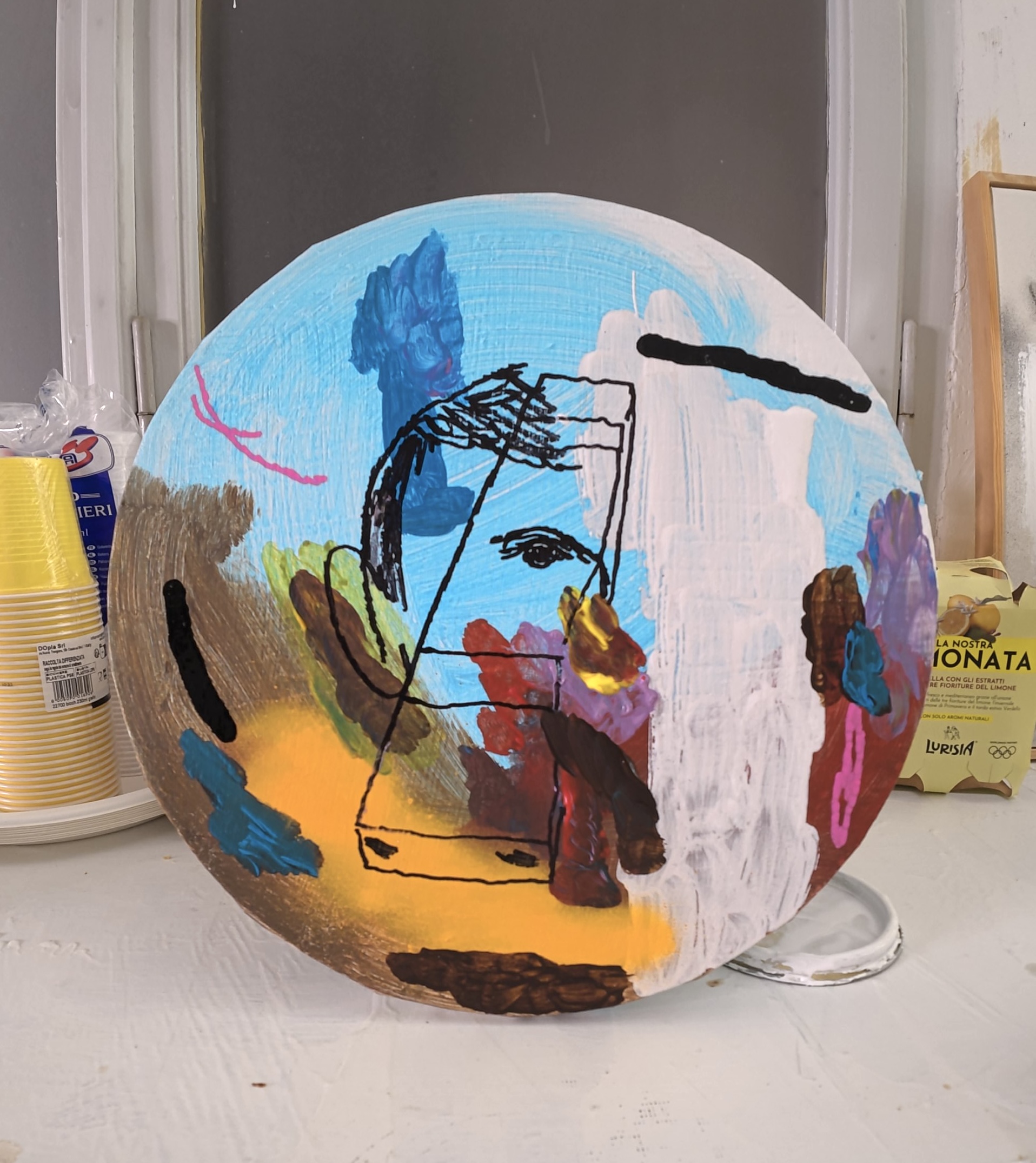 2026 | 30x30 cm | Acrilici, smalto, marker su tela
